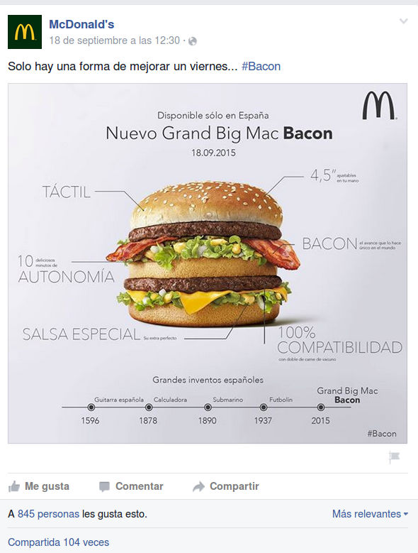 Son los mismos fans, la misma marca… y publicaciones en su página de Facebook con diferencia de pocos días, pero el resultado es muy distinto. Frente a los 6.655 “me gusta” del vídeo, esta foto tiene menos de mil. Seguramente influirá la fecha y hora de publicación u otros muchos factores, pero lo más probable es que aspectos como el uso de tecnicismos o la falta de mensajes emocionales y directos pueden haber tenido mucho que ver con el resultado.
