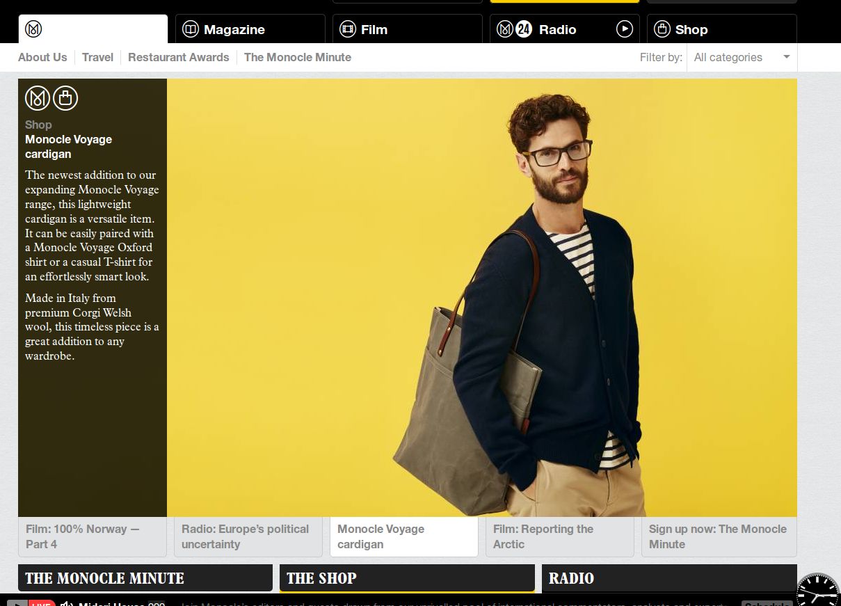 Pongamos el ejemplo de Monocle, una revista que ha creado su propia personalidad de marca y ha sabido hacerse con un nicho de mercado muy específico. Su e-commerce se enfoca en productos de ropa y complementos principalmente, pero no han descuidado el Inbound Marketing, y por eso su forma de captar la atención de su mercado ha sido mediante contenidos de calidad e interés, lo cual les ha convertido en una marca referente y está siendo clave para sus ventas.