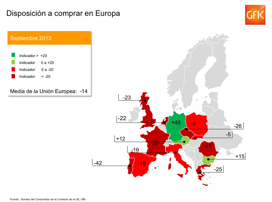 En España, en comparación con el mes de septiembre del año pasado (-33), se ha experimentado una mejora de casi 16 puntos con respecto a los datos registrados en este 2013. Por partidas, el gasto destinado a bienes de primera necesidad y cuidado personal han mejorado ligeramente sus expectativas, mientras que las partidas más elásticas (equipamiento del hogar y ocio) han mantenido estables sus valores con respecto al año pasado.