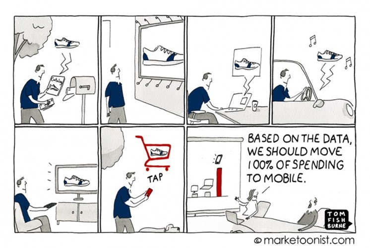 Seamos realistas. Nunca sabrás exactamente lo que trajo a cada persona a tu web, y eso no es algo malo. Cada componente de la mezcla en una estrategia de inbound marketing hace su parte – OnLine y OffLine. Los directores de marketing nunca pueden depender completamente de los datos, y esta caricatura de Marketoonist explica perfectamente la razón:
