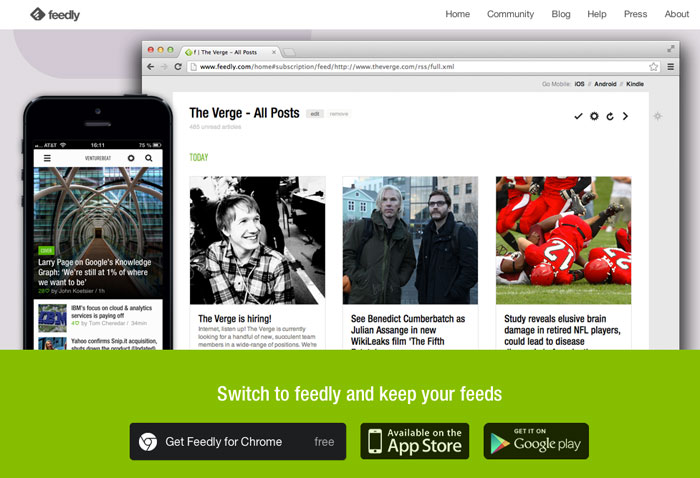 Feedly es un versátil lector de feeds que cuenta con un diseño simple y con aplicaciones para iPhone y Android, además se ha convertido en uno de los lectores favoritos del momento. Con el cierre del servicio de Google Reader los usuarios hemos encontrado una alternativa en Feedly, el cual permite sincronizar la información de Google Reader a tu nueva cuenta. Si tampoco conocías Google Reader no pasa nada ya tienes a Feedly que es mucho mejor.