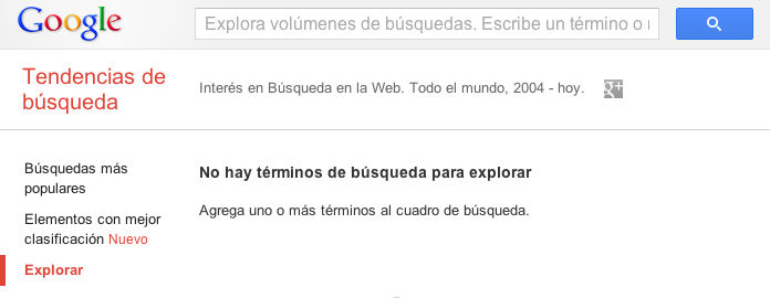Al entrar en la Aplicación (http://www.google.es/trends/) encontraremos algo similar a esto: