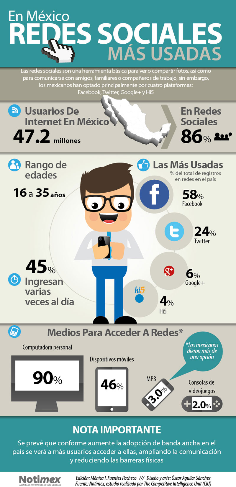 - – En México hay 47.2 millones de usuarios de Internet y 86% de ellos tiene al menos una cuenta activa en una red social.