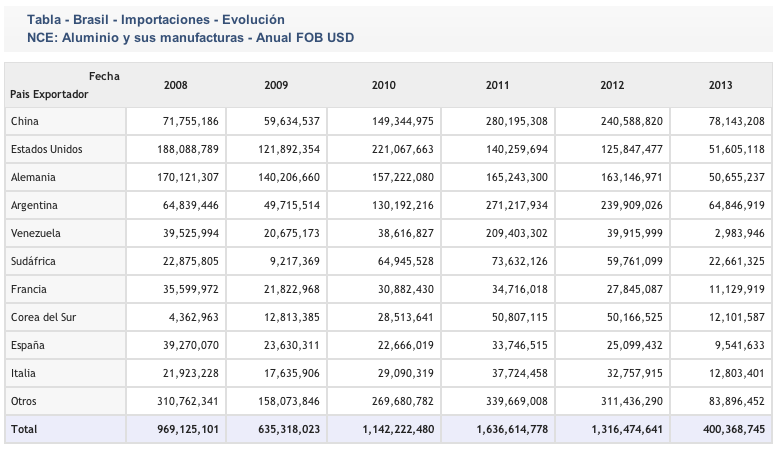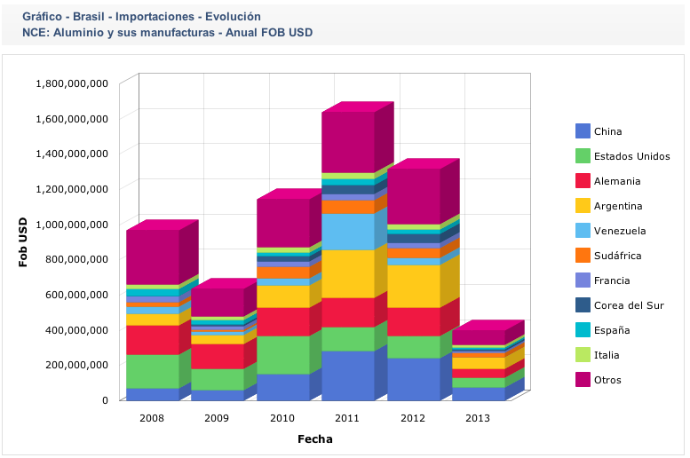 Comercio Exterior de Brasil de NCE Aluminio y sus manufacturas